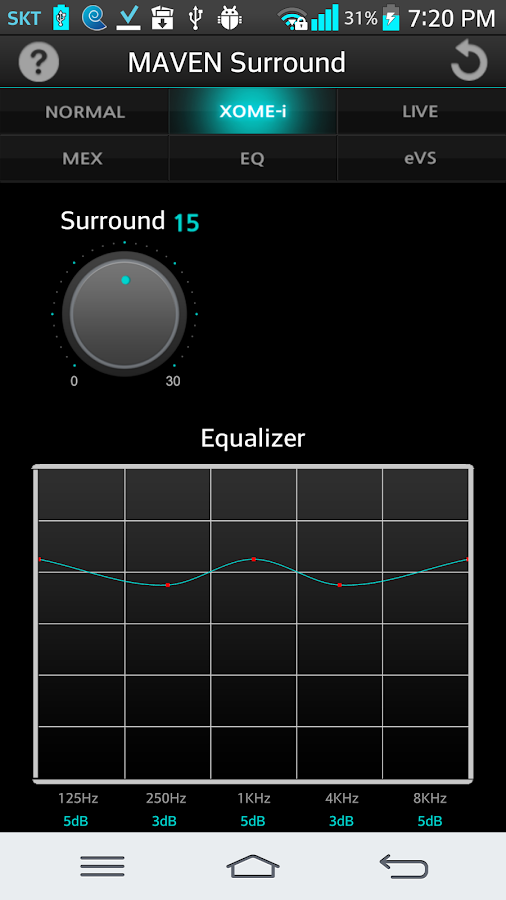 7. XOME-i(Externalization), Live(Reverberation), Mex(Maestro), EVS(Virtual Speaker)